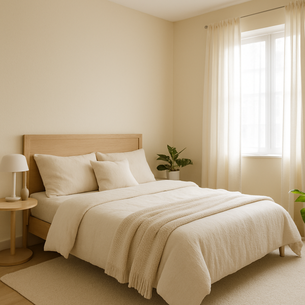- Sélectionnez des teintes complémentaires (comme l’écru pour les meubles).